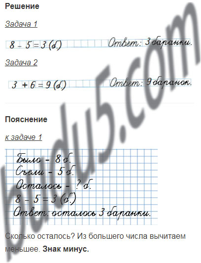 На тарелке было 8 баранок. Съели 5 баранок. Сколько баранок осталось?