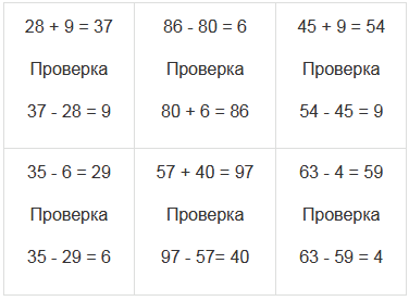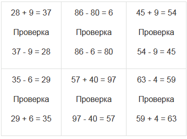 | 28 + 9 | 86 - 80 | 45 + 9 |
