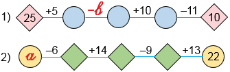 7. Среди чисел 8, 36, 19, 15, 10 найди нужное значение буквы для каждой цепочки.