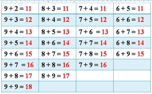 | 62 + 8 = (60 + 2) + 8 = 60 + (2 + 8) = 60 + 10 = 70 | 22 + 8 = (20 + 2) + 8 = 20 + (2 + 8) = 20 + 10 = 30 | 15 - 6 = 15 - (1 + 5) = 15 - 5 - 1 = 10 - 1 = 9 |