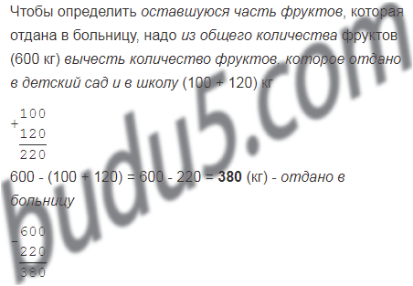 Кот Матроскин вырастил в своём саду 246 кг яблок и 354 кг груш. Шестую часть всех фруктов он отдал своим друзьям из детского са­да, пятую часть всех фруктов — друзьям из школы, а остальное — в больницу. Сколько килограммов фруктов Матроскин отдал в больницу?