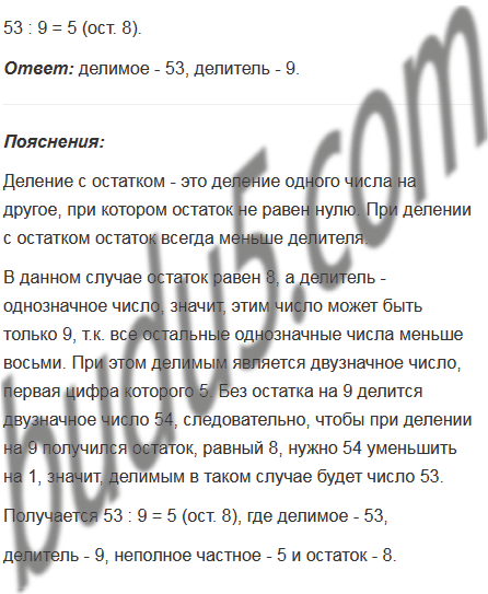 Двузначное число, первая цифра которого 5, разделили на однозначное число и получили в остатке 8. Найдите делимое и делитель.