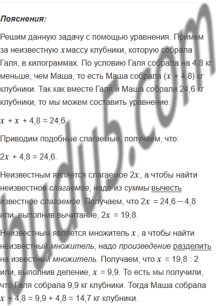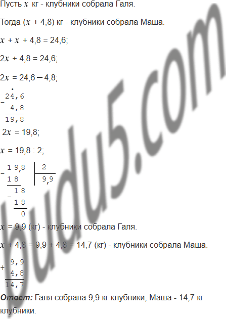 Галя и Маша собрали 24,6 кг клубники, причём Галя собрала на 4,8 кг меньше, чем Маша. Сколько килограммов клубники собрала каждая девочка?