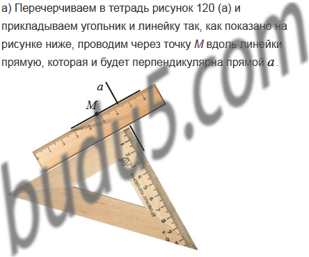 Перерисуйте в тетрадь рисунок 120. Проведите через точку М прямую, перпендикулярную прямой .