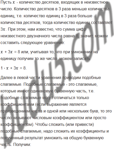 Сумма цифр двузначного числа равна 8, количество десятков в 3 раза меньше количества единиц. Найдите это число.