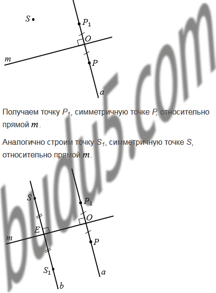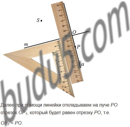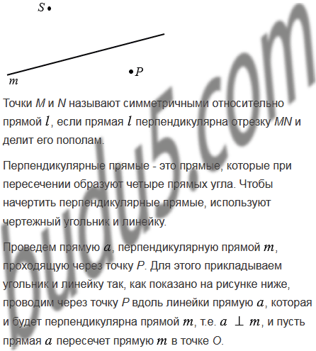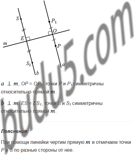 Начертите прямую и отметьте точки Р и S по разные стороны от нее. Постройте точки, симметричные точкам Р и S относительно прямой .