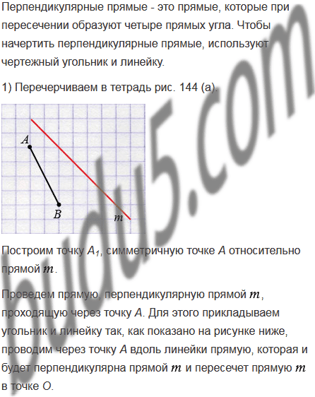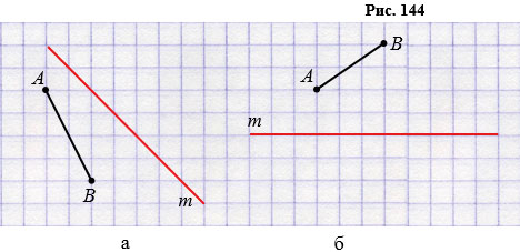 Перерисуйте рисунок 144 в тетрадь и постройте отрезок, симметричный отрезку АВ относительно прямой .