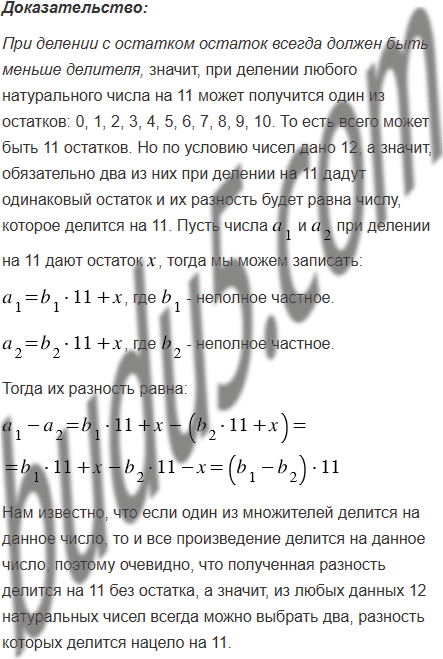 Дано 12 натуральных чисел. Докажите, что из них всегда можно выбрать два, разность которых делится нацело на 11.