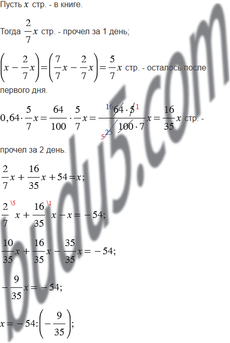 За первый день Вася прочёл страниц книги, за второй - 64% оставшихся,  а за третий - остальные 54 страницы. Сколько страниц в книге?