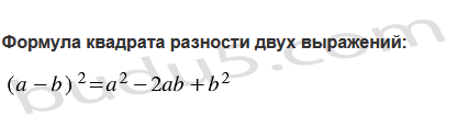 Вспомните, какое тождество называют формулой квадрата разности двух выражений.