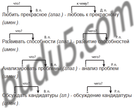 Перепишите словосочетания, перестраивая глагольные словосочетания в именные по образцу.