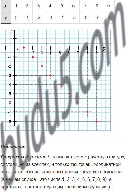 Задана функция , областью определения которой являются все однозначные натуральные числа. Постройте график этой функции.