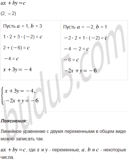 Составьте какую-нибудь систему двух линейных уравнений с двумя переменным, решением которой является пара чисел (2; 2).