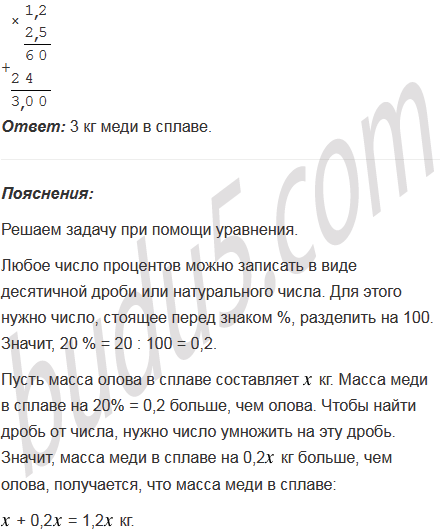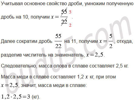 Кусок сплава меди и олова массой 5,5 кг содержит меди на 20% больше, чем олова. Найдите массу меди в этом сплаве.