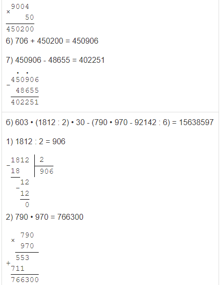 | б) 603 • (1812 : 2) • 30 - (790 • 970 - 92142 : 6) |